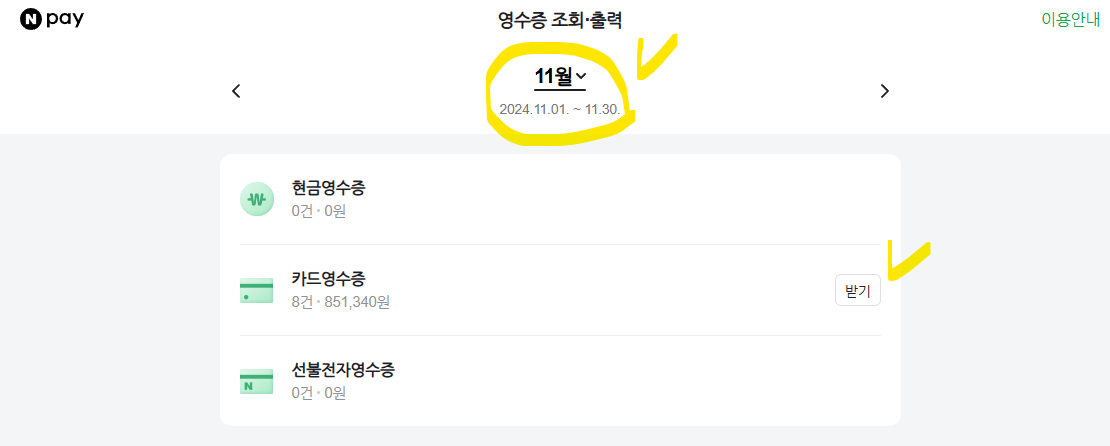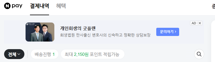 다음과 같은 화면이 나오고, 결제내역 탭에 들어와 있을텐데요